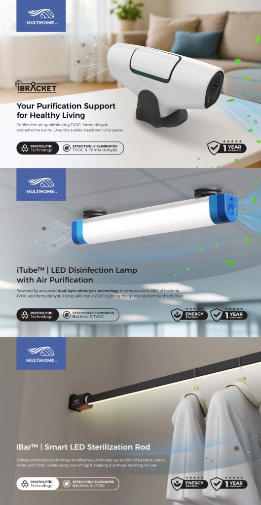 Multi Home’s technology protects your family from formaldehyde and viruses, ensuring a safe and healthy environment.