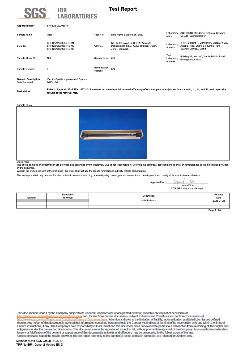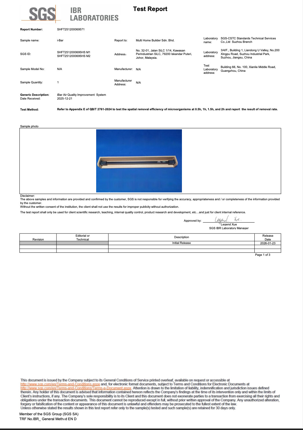 The iBar Air Quality Improvement System has been further validated by SGS for its dual-action effectiveness. In spatial air tests, it achieved a removal rate of up to 66.63% against airborne bacteria within 2 hours. Furthermore, it demonstrates significant performance on physical surfaces, effectively reducing surface-bound pathogens such as Staphylococcus aureus and Aspergillus niger over a 4-hour period. These tests, conducted in a 10m3 chamber, confirm the iBar’s ability to provide continuous microbial reduction across both the air we breathe and the surfaces we touch.
