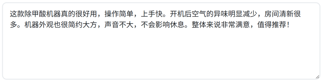 这款除甲酸机器真的很好用,操作简单,上手快。开机后空气的异味明显减少,房间清新很多。机器外观也很简约大方,声音不大,不会影响休息。整体来说非常满意,值得推荐!